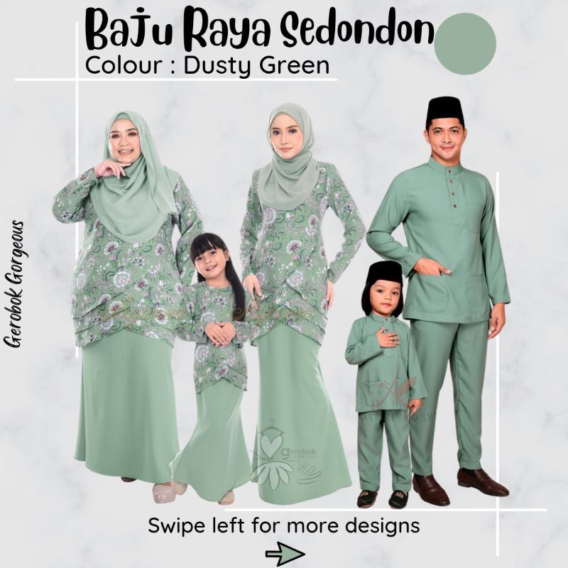 Baju Raya Sedondon Tema Warna Dusty Green Hijau Pastel Set Family Ayah Ibu Anak Baju Kurung Baju Melayu Kurta Rayafr Shopee Malaysia